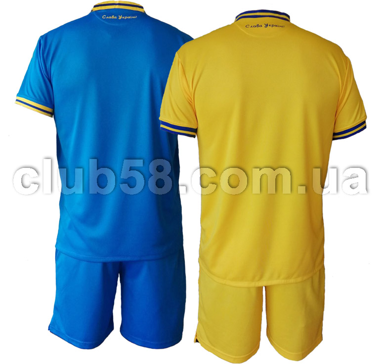 Форма сборной Украины для болельщика желтого и синего цвета. В комплекте: футболка и шорты. Футболка с коротким рукавом. Крой футболки прямой. На передней части футболки изображена карта Украины по центру герб Ассоциации Футбола Украины. Сзади, на верхней части футболки, нанесен лозунг " Слава Україні!", а на внутренней части воротника - "Героям Слава!". Футбольная форма изготовлена из полиестера и простая в уходе. Специального переплетения нитей способствует лучшей циркуляции воздуха, кроме того, из-за своей текстуры, форма быстрее высыхает. Ткань приятная на ощупь, легкая, стойкая к износу и потери цвета. Форма оснащена сеточками для отвода влаги и циркуляции воздуха.