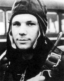 В ноябре 1957, в возрасте 23 лет Юрий получил высшее образование и стал лейтенантом Советских Воздушных сил. Также в этот день в новой форме офицера Юра женился на его красивой и любимой Вале. Первая должность Юрия была летчик - истребитель на Советской базе Военно-Воздушных сил в Арктике, и его первые полеты проходили при северном сиянии... В 1960 в числе кадровых лётчиков, обладавших отличной лётной выучкой и хорошими теоретич. знаниями, был зачислен в первый отряд космонавтов, где освоил обширную спец. программу, прошёл огромный объём тренировок и овладел космической техникой. 12 апреля 1961 года впервые в мире совершил полёт в космос на космич. корабле «Восток», стартовавшем в 9 ч 07 мин по моековскому времени с космодрома Байконур. За 1 ч 48 мин он облетел земной шар и благополучно возвратился на Землю, открыв эру освоения человеком космического пространства (космический корабль «Восток» приземлился в р-не деревни Смеловка Саратовской обасти).
