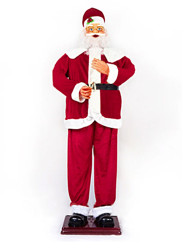 (высота 160см, шуба украшена золотом, Дед Мороз танцует и поёт. Можно укомплектовать также мешком для подарков)