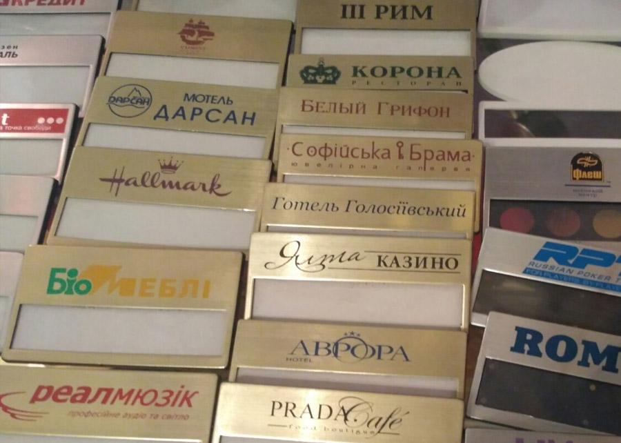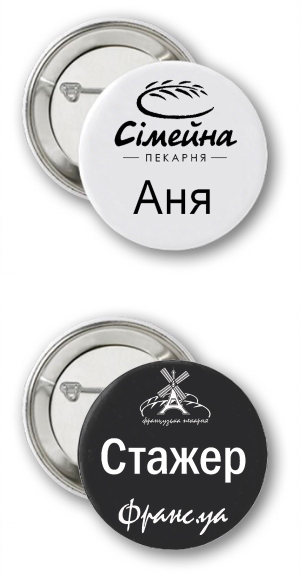 Бейджі є невідмінним атрибутом корпоративного стилю являють собою відмітний знак на формі службовців. Бейджі найчастіше несуть таку інформаціюі: ім'я носія, посаду і організацію, в якій він працює. Бейджі мають віконце для вставки імені. Вставка може бути поліграфічна(напечатана на папері чи картоні) або металева з нанесенням, яке дозволяє нанести будь-які зображення. З заднього боку бейдж кріпиться на булавку, затиск або подвійний магніт...