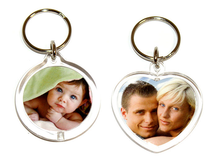 Пластикові або акрилові брелоки представляють собою заготовки різних форм: круглі, прямокутні, овальні та інші, в середині яких розміщується поліграфічна вставка.