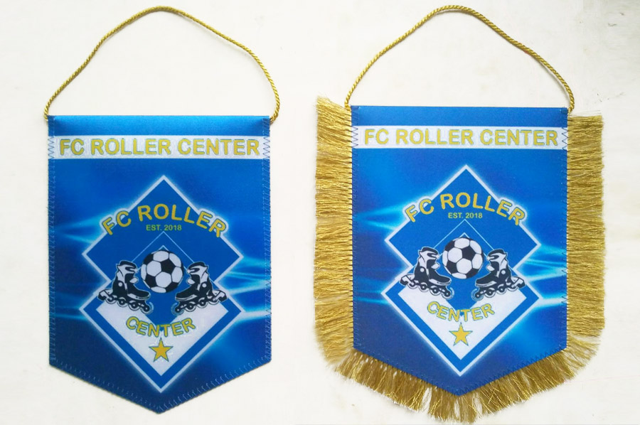 Окончательный этап - это пошив вымпелов и обработка краев. Вымпела могут быть сшивные (после термообработки краев), обшитыми шнуром или бахромой. Возможно комбинирование методов обработки, например, сшивной вымпел с бахромой по низу. Вымпел может быть дополнительно украшен кистями...
